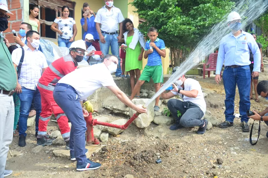 Se instalaron 9.2 kilómetros de redes 1.065 acometidas y además se ejecutaron trabajos complementarios para que los 9 mil habitantes contarán con el servicio de acueducto en condiciones dignas. Próximamente y con recursos propios de Veolia instalaremos 1.4 kilómetros de tuberías con inversión propia de Veolia para beneficiar a otras 165 familias.