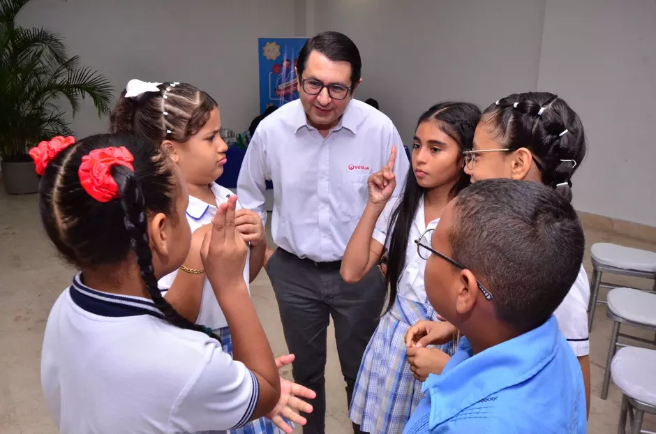 Fabio Araque De Ávila gerente general de Veolia Sabana destacó el trabajo de cada uno de los 350 niños, por su conciencia ambiental, por las poderosas solicitudes hechas a las autoridades de sus respectivos municipios, para que implementen acciones necesarias para cuidar y optimizar recursos como el agua, la energía y el tratamiento responsable de los residuos.