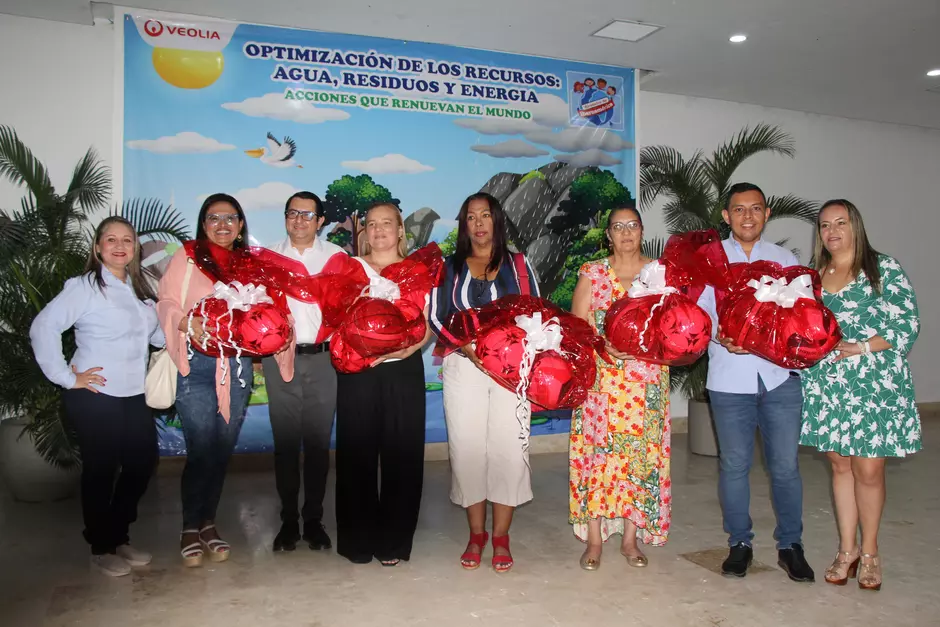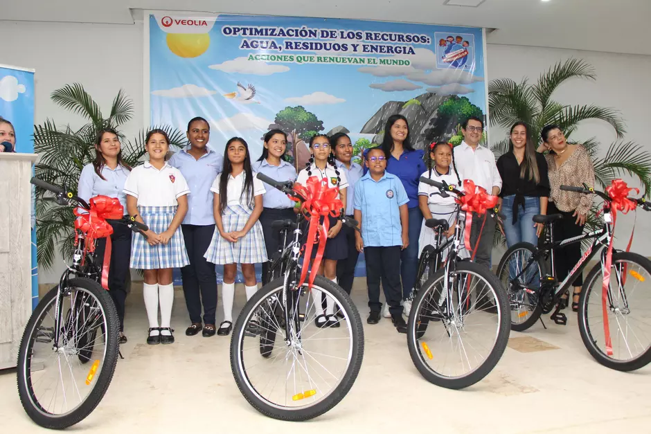 Los niños representantes de los otros municipios operados por Veolia Sabana Sharon Michel Fernández Gómez, 11 años, de sexto grado, del Liceo Carmelo Percy Vegara de Corozal, Melanys Gómez Chadid de 6°A de la Institución educativa San José CIP Sincelejo, Josué Lara estudiante de sexto grado del colegio San Mateo de Magangué y Enalba Herrara Ramiŕez de Nuestra Señora del Carmen de Chinú, recibieron cada uno una bicicleta y sus colegios un Kit de balones de fútbol, basquetbol y voleibol.