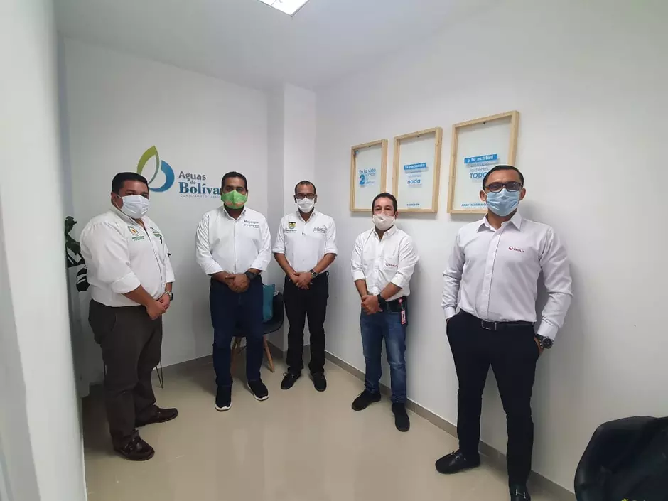 La radicación del proyecto la hicieron ante Arnaldo Barreto, gerente de Aguas de Bolívar, el alcalde de Magangué Carlos Cabrales Isaac, su secretario de Planeación Jhonatan Camero Sampayo, el gerente de interventoría y construcción y el jefe de la unidad de negocios de Veolia respectivamente Walter Hernández y Felix Domínguez.